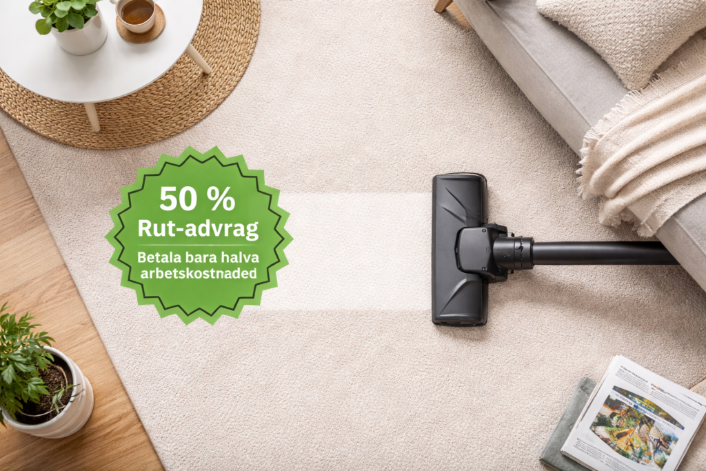 Med RUT-avdrag betalar du som privatperson bara 50% av arbetskostnaden för städning. Avdraget gäller upp till 50 000 kr per person och år, och vi drar av det direkt på fakturan – du behöver inte ansöka själv. Kontakta oss för ett exakt pris baserat på din bostads storlek och städbehov i Umeå.